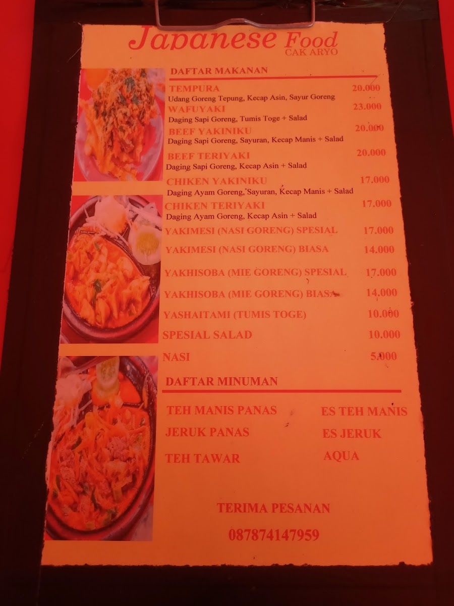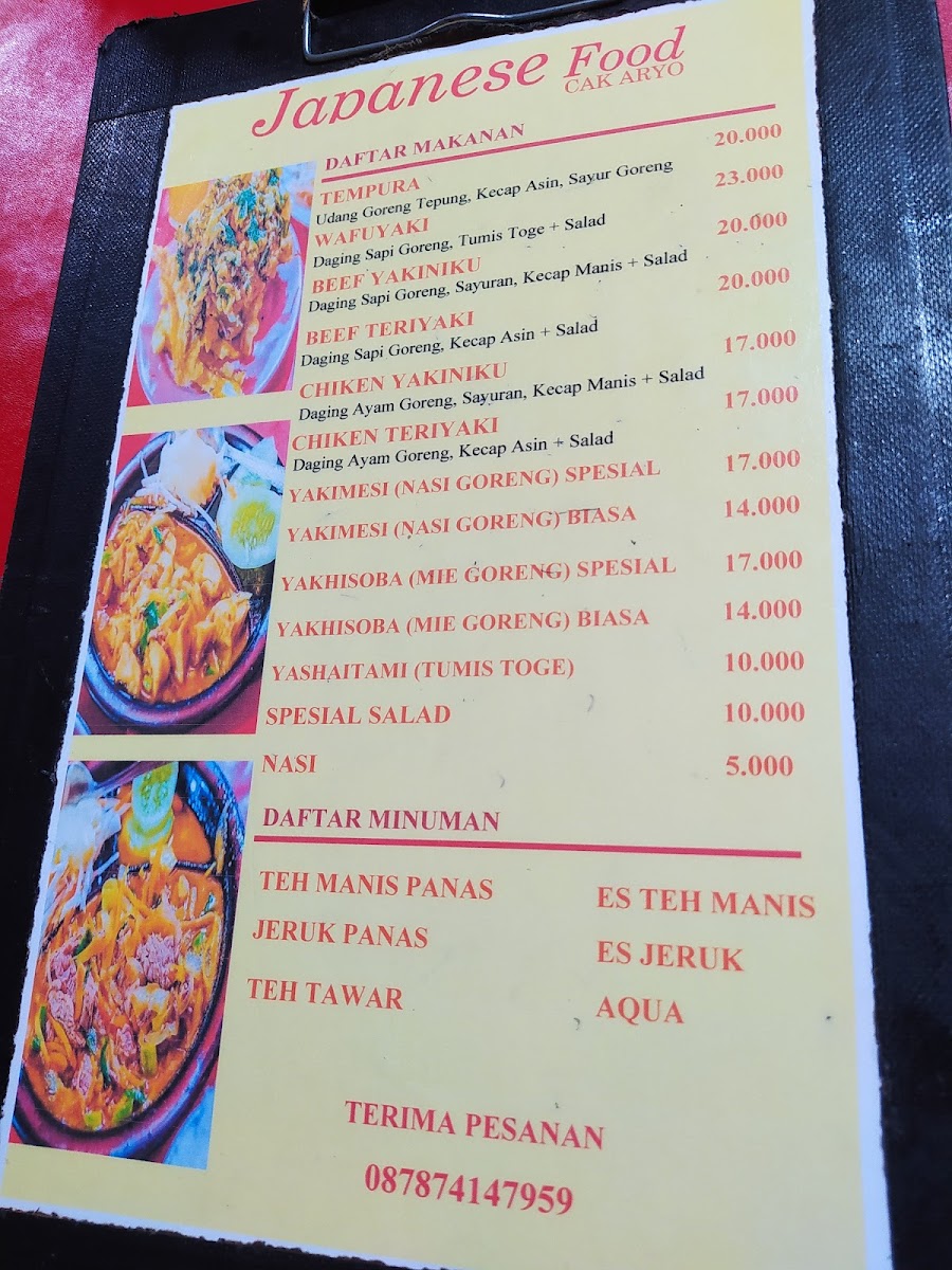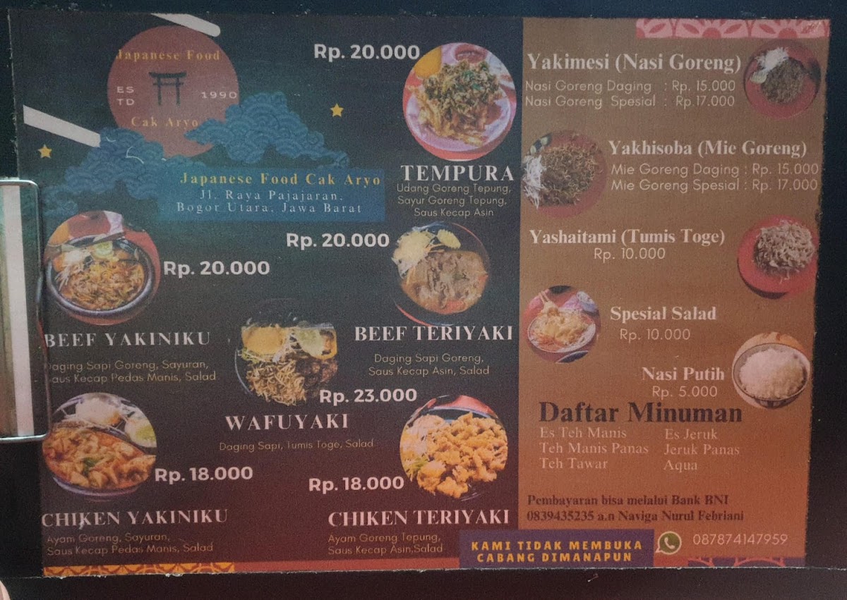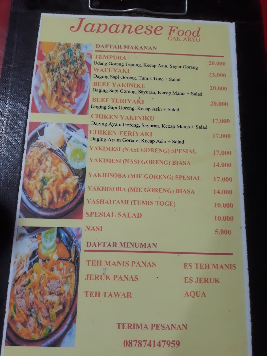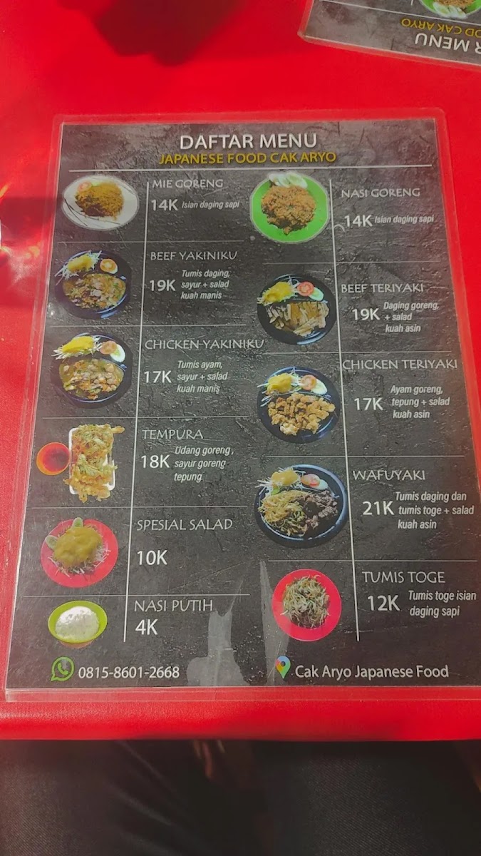At Japanese Food Cak Aryo Menu, you'll find a delicious assortment of traditional Japanese dishes served with a modern twist. Located in the heart of Bogor, this cozy restaurant brings the best of Japan’s culinary traditions to your table. Whether you’re craving fresh sushi, comforting ramen, or flavorful bento boxes, every dish is made with care, using only the finest ingredients. The menu offers a variety of options that cater to all tastes, from light appetizers to hearty mains. For a truly authentic experience, try their signature dishes that showcase a fusion of flavors. Whether you're a seasoned Japanese food lover or new to the cuisine, there’s something here to satisfy every palate.